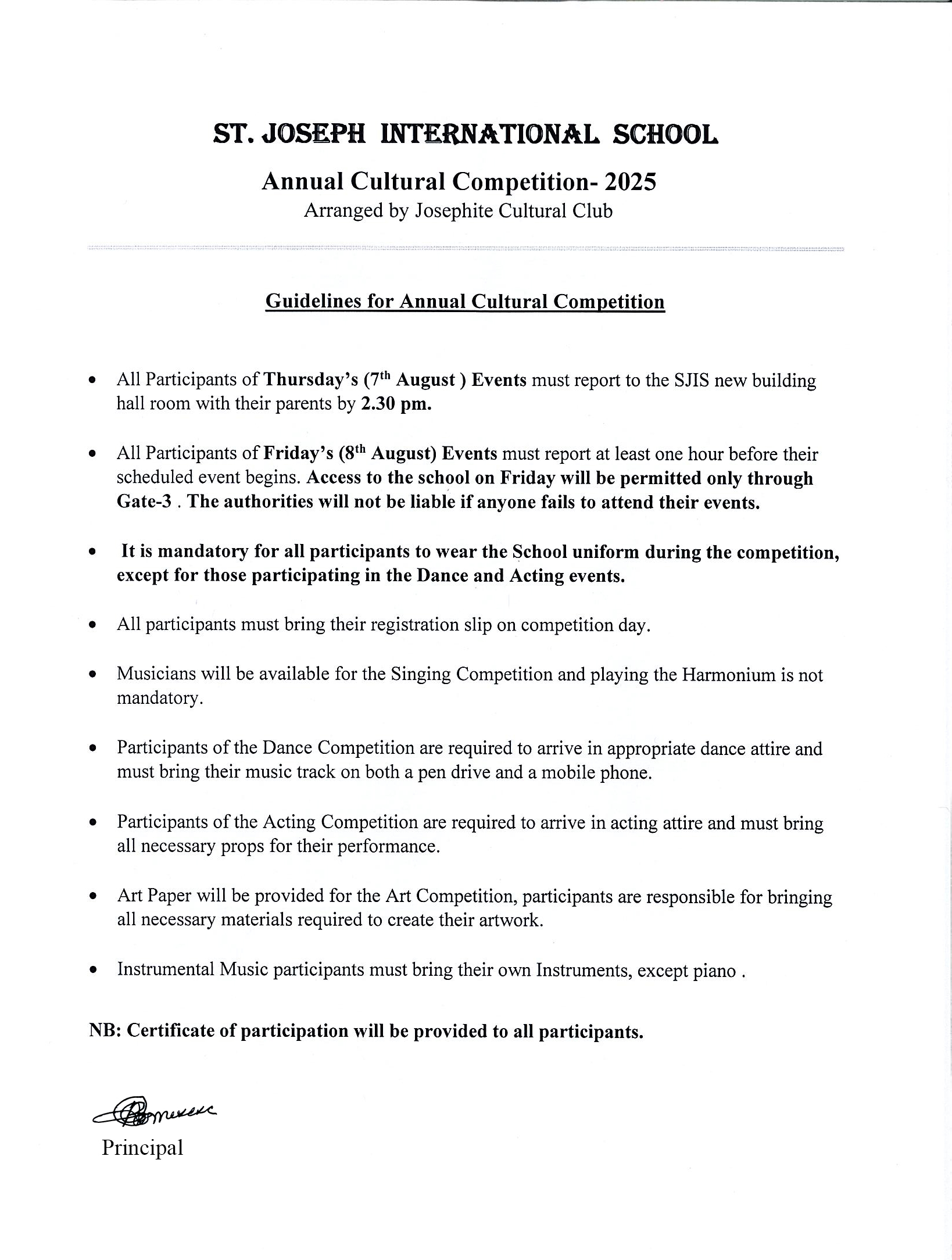 Notice from Cultural Club